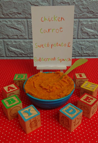 Chicken Breast, Organic Sweet Potatoes, Organic Carrots, Organic Butternut Squash, Organic Olive Oil
